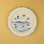 Evoking the quiet beauty of a moonlit pond, this dinner plate features deep, warm tones inspired by star reflections and floating water lilies. A poetic piece for evening gatherings — where light, shadow, and conversation linger softly like ripples on water.